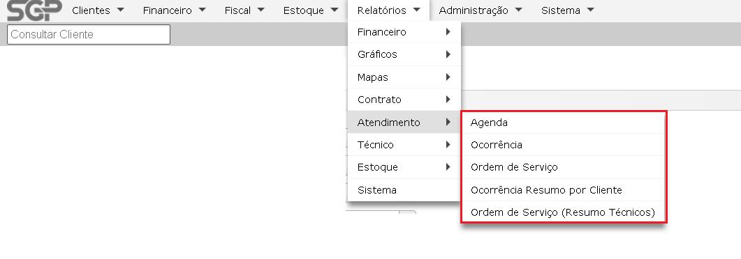 Os relatórios de atendimento exibe relatórios relaciona dos à Ocorrência, Agendamento e a Ordem de Serviço. Acesse o relatório que você deseja no menu Relatórios » Atendimento.