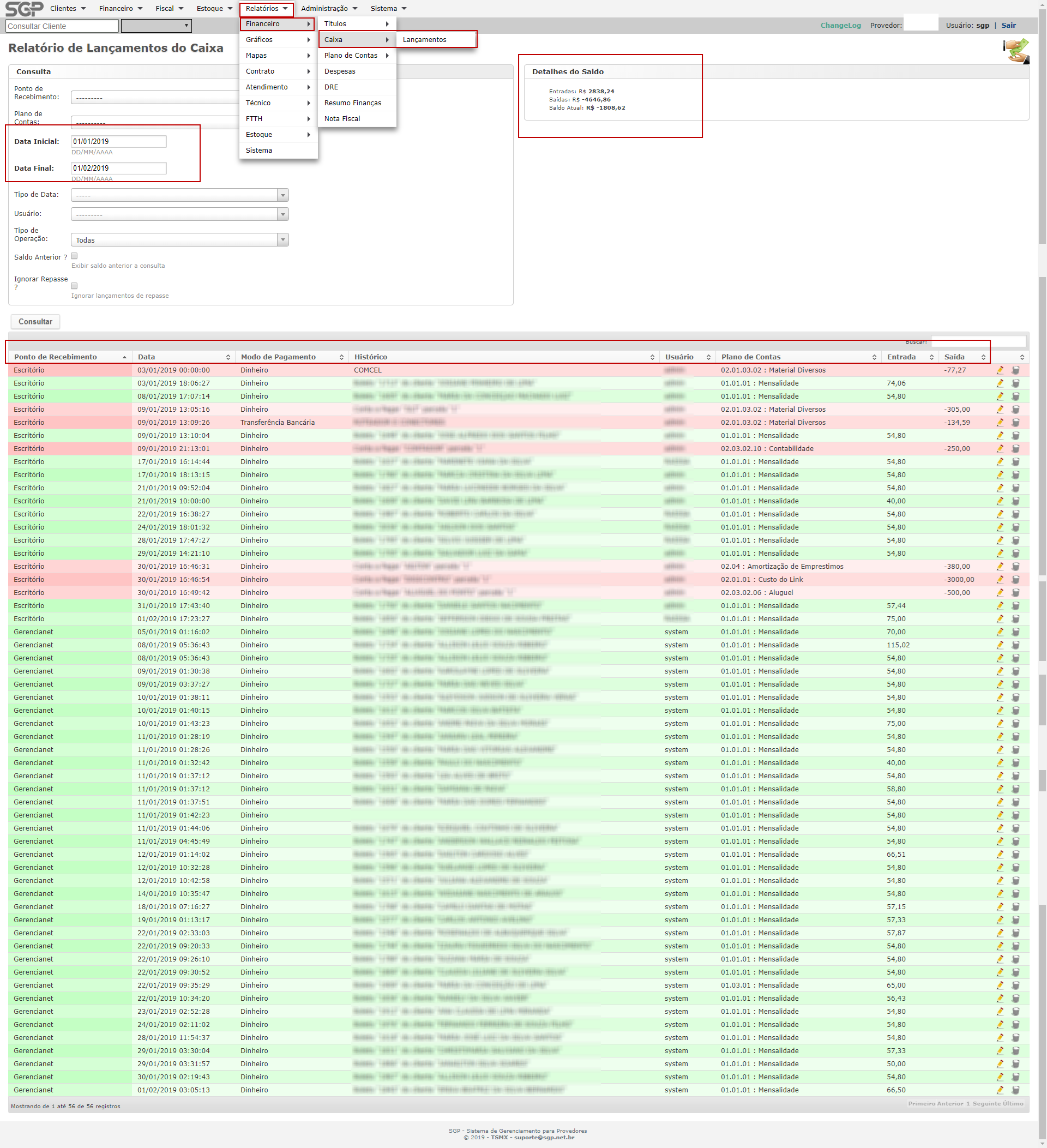 MENU>-RELATÓRIOS>FINANCEIRO> CAIXA>LANÇAMENTOS